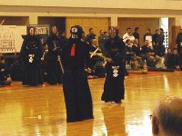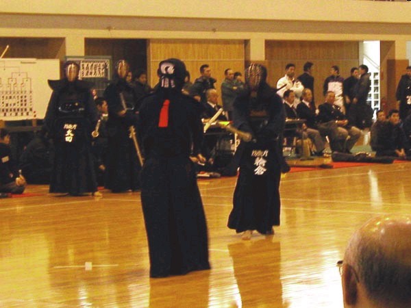 30年振りの雄姿。気迫と貫禄で?3回戦進出。果敢に攻めるキャップテン。(たまらず相手の腰は引けているが・・・)左後方は、副将の戦況を見つめる大将、太田情報本部長(14海)