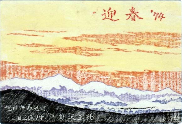 どんな出来になるか不安に駆られつつ、雪が深深と降るなか、中隊の幹部室で2晩で彫り上げました。ただ刷るのはかなり手こずり、当時100枚ほど刷って満足なものは10枚程度だった気がします。(一回の刷りの成功率を0.7として、5色全て成功する確率は、0.7の5乗で0.15?)
