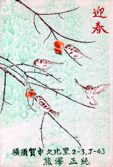 知人からは「なぜ雀なのか?」とか「4羽は縁起が悪い」とも言われましたが・・・。 背景を薄い絵の具(水で薄めた)で入れてみました。この色を変えることにより、かなり趣の異なる版画になります。