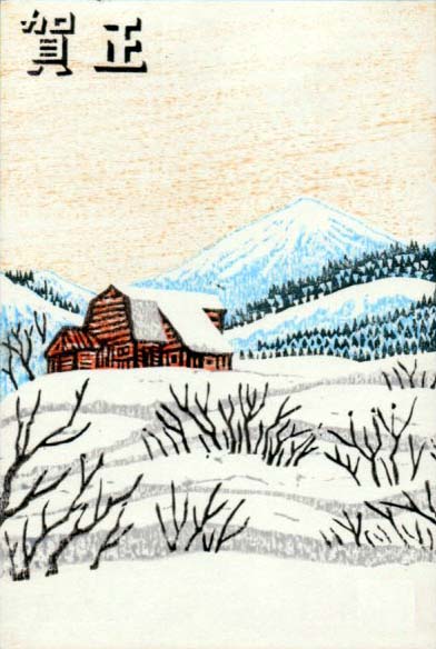 版画は何処の風景かは分かりませんが、町の図書館で見かけた版画の作品を模倣しました。