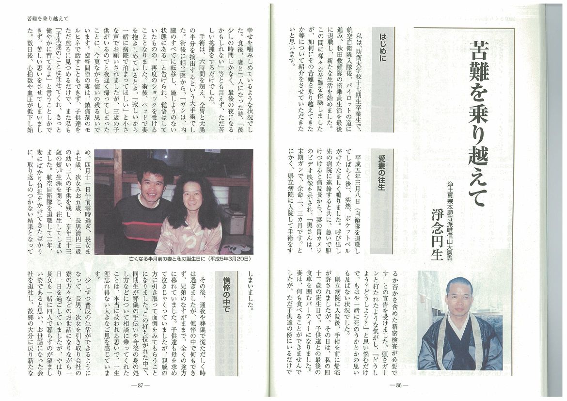 > > 航空自衛隊連合幹部会機関誌「翼」に掲載された、浄念円生君の記事を紹介します。画像として添付します。必要な方は、メールでお送りします。「翼」をご覧になれるOBは、そちらをご覧下さい。