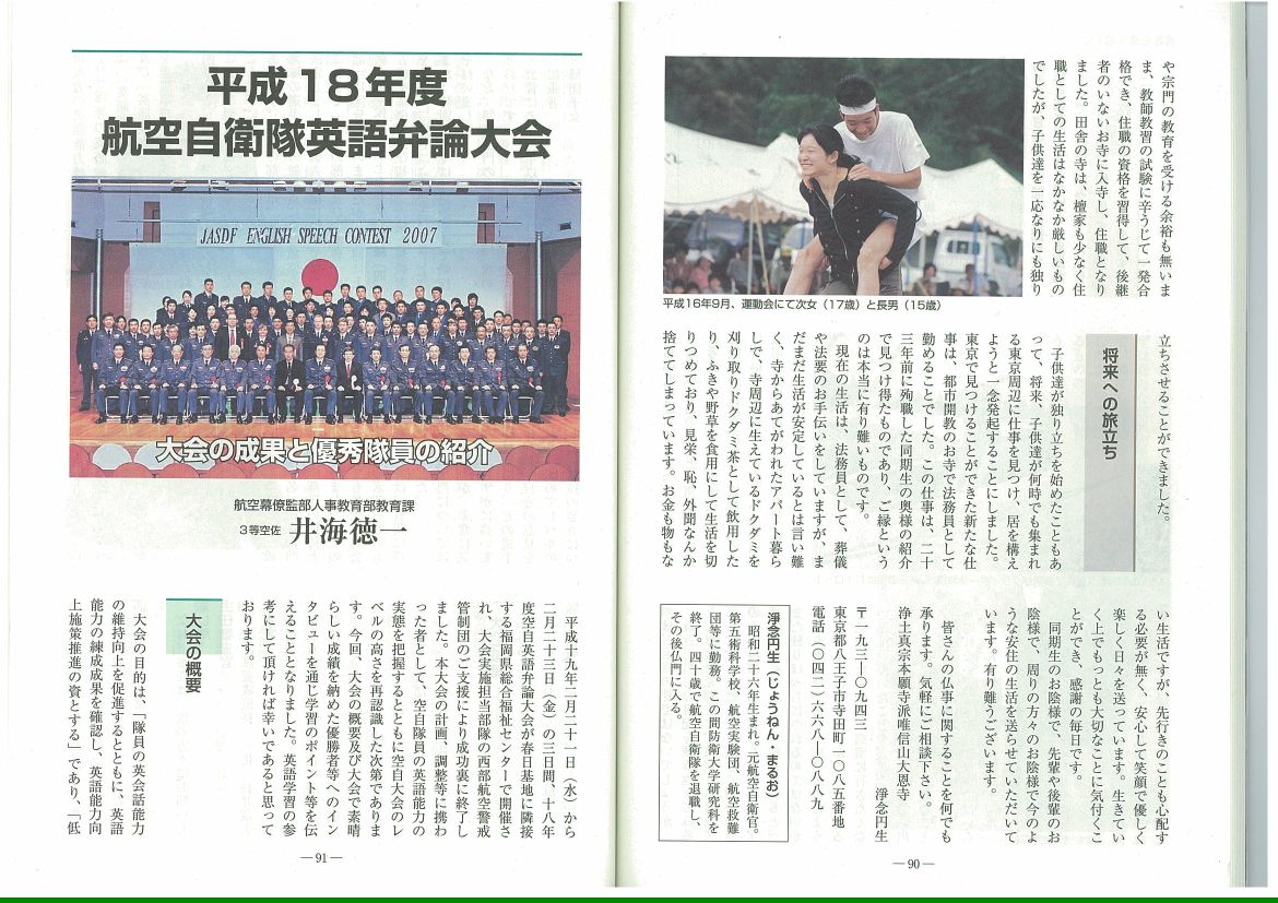 航空自衛隊連合幹部会機関誌「翼」に掲載された、浄念円生君の記事を紹介します。画像として添付します。必要な方は、メールでお送りします。「翼」をご覧になれるOBは、そちらをご覧下さい。
