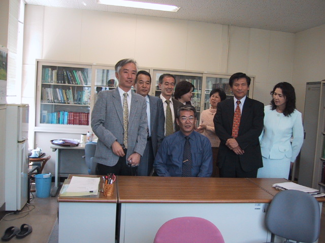 右から、川越、永田、生天目、堤、常陸です。原田が写してくれました。> 昼食会(航空要員)> 生天目教授の部屋に、昼食を準備していただきました。