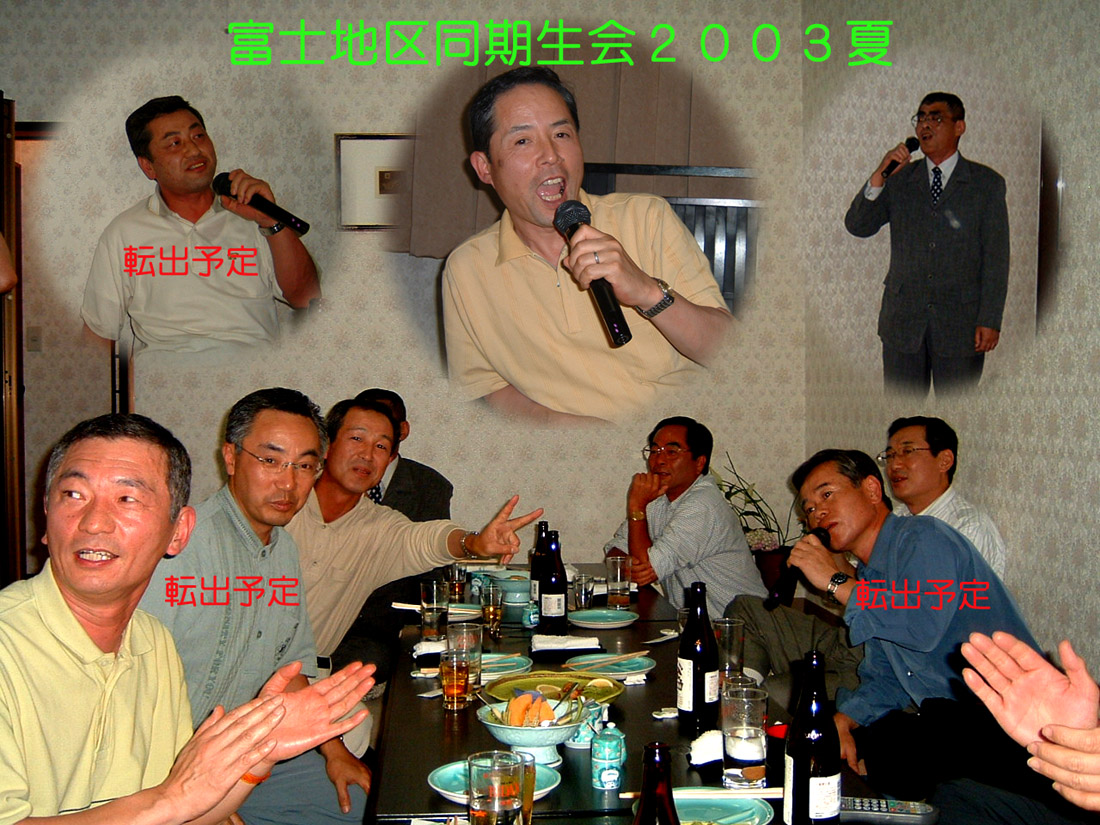 富士地区では、ちょっと早いんですが、夏の異動予定者の送別会を執り行いました。あいにく井岡君は沖縄出張中で不参加でしたが、彼の話題を酒の肴にみんなで盛り上がりました。2003.7.15
